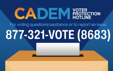 Download Printable Version Protect the Vote: What to Do When You See Voting Impacted Yes on Proposition 50 | Election Day: November 4, 2025 Voter Protection Hotline: 1 (877) 321-VOTE (8683) Document and