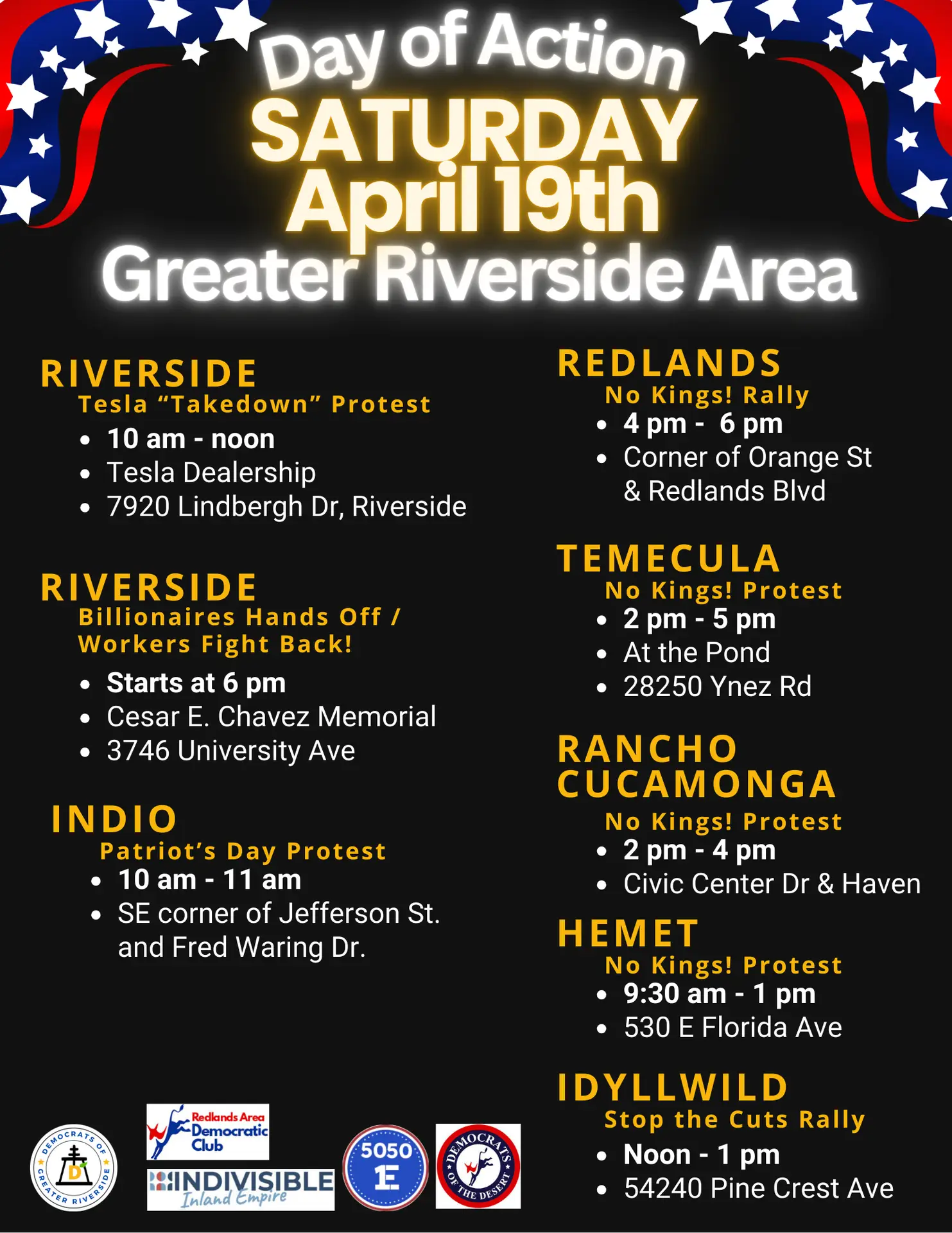 April 19th “Day of Action” Events around Riverside Area