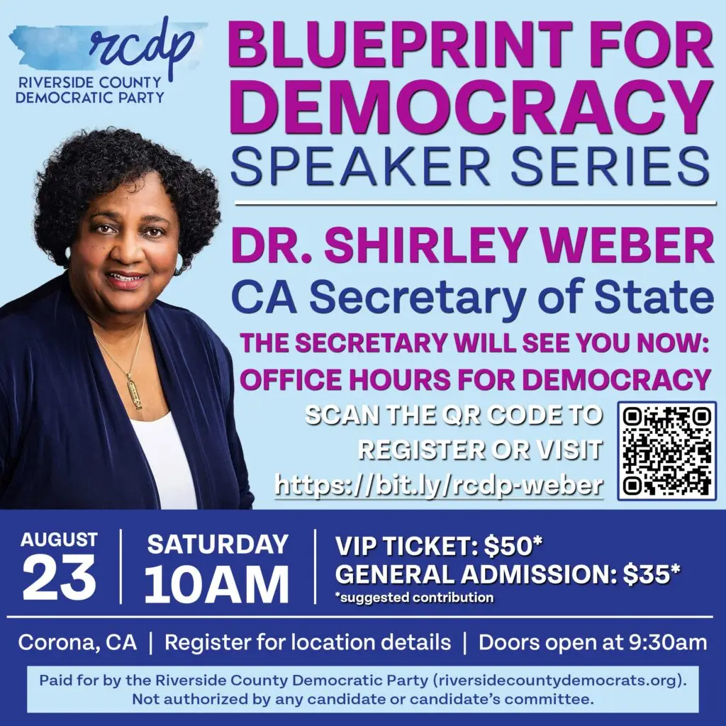 This is your opportunity to get direct answers from the person responsible for administering elections in California. Bring your questions about voting procedures, election security, and how to stay informed about genuine election information.