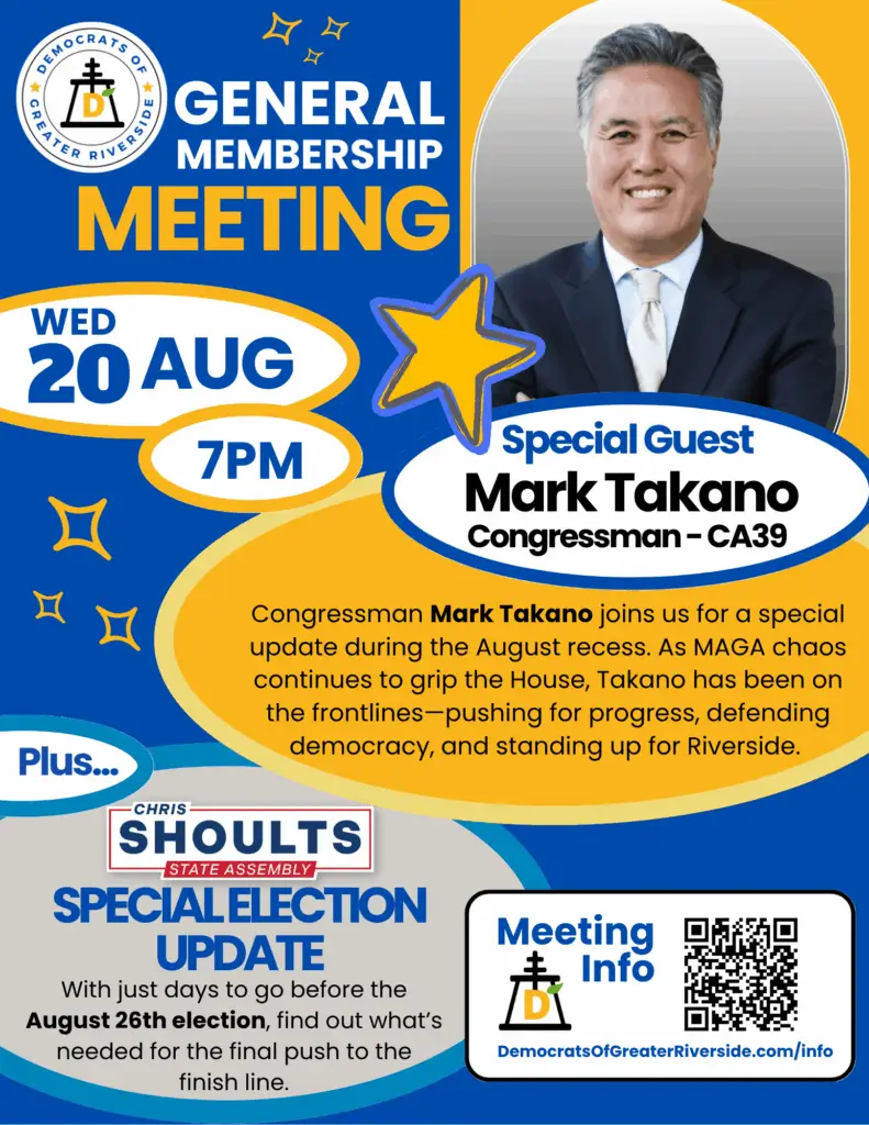 Congressman Takano to Join DGR Meeting on August 20By DGR Communications / August 3, 2025 Click here for Meeting Info