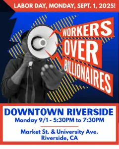 Join us this Labor Day as we stand united against the billionaire class and their attacks on working people. We’re fighting for public schools, affordable healthcare, and a future where prosperity is shared—not hoarded. On September 1, we’ll return to the streets in communities across the country to demand justice, solidarity, and a government that puts people over profits. The billionaires’ time is up—let’s rise together.