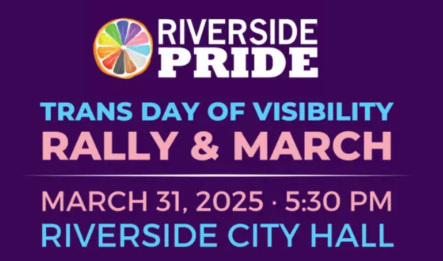 Join Riverside Pride in celebrating Trans Day of Visibility with a powerful rally and march through the heart of Riverside! This event is a call to honor, uplift, and support the transgender and nonbinary community while advocating for equality and visibility as we see countless attacks and trans erasure from our federal government.
