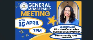 We’re building momentum—and April’s DGR meeting is where it all comes together. Happening on APRIL 15th at 7PM. (details here) Join us as we welcome Clarissa Cervantes, a Riverside native and current City Councilmember who is now running for State Assembly. She’ll share insights from City Hall, talk about the issues impacting our community, and discuss what it will take to win in 2026. But this meeting is about more than just hearing from a