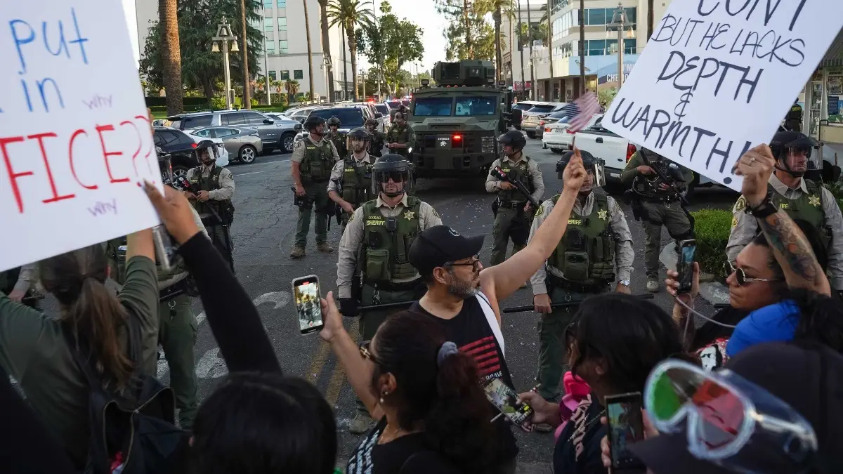 Another protester, Aledaida Andrade, traveled from Temecula to downtown Riverside after seeing a flyer for the protest on social media. She’s from an immigrant family, she said, and felt that it was important to protest after seeing the recent immigration sweeps across California.